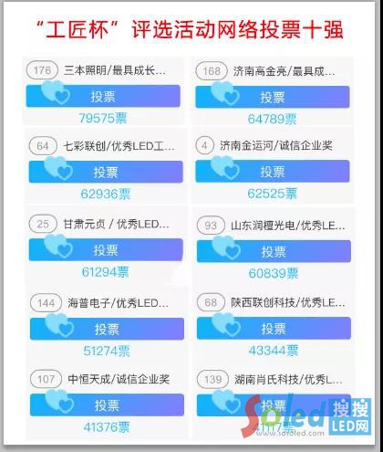 雖說(shuō)現(xiàn)在還只是此次評(píng)選活動(dòng)最初的報(bào)名及網(wǎng)絡(luò)投票階段,但作為此次“工匠杯”LED顯示應(yīng)用行業(yè)評(píng)選活動(dòng)組委會(huì)工作組成員,我們每天都被積極參與此次“工匠杯”評(píng)選活動(dòng)的熱心企業(yè)和人士所感動(dòng)著,激勵(lì)著……看著他們每天不遺余力地投票、拉票,在各個(gè)朋友圈、親友圈、同學(xué)圈、老鄉(xiāng)圈等各行各業(yè)的圈子里,為拉票而盡情地“煽情”,真是”躹躬盡瘁,死而后已”啊! 我們由衷地認(rèn)為,參與此次“工匠杯”LED顯示應(yīng)用行業(yè)評(píng)選活動(dòng)的人,無(wú)愧于當(dāng)前行業(yè)最可愛(ài)的人。