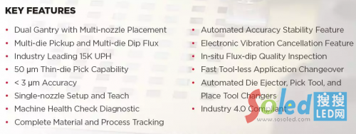 張贊彬分享了K&S一款最新的FC封裝設(shè)備——Katalyst,通過(guò)使用電子消振功能來(lái)補(bǔ)償機(jī)器振動(dòng)所造成的精確度誤差,Katalyst為行業(yè)提供了倒裝芯片最高的精確度和生產(chǎn)速度,其硬件和技術(shù)能夠使精度達(dá)到3μm,為業(yè)內(nèi)最佳水平。產(chǎn)能也高達(dá)15,000UPH,相當(dāng)于業(yè)內(nèi)平均產(chǎn)能的一倍。Katalyst主要性能如下: