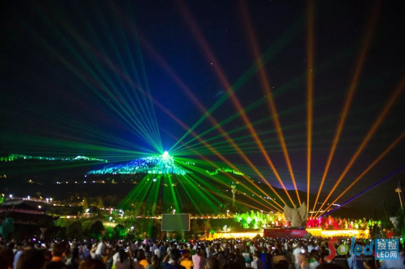因此,在項目進行階段,如何保證最終效果的還原度成為一個挑戰(zhàn)。在視角主峰及兩側(cè)山脊范圍內(nèi)需要安裝8米燈桿1300套余套,燈具6500臺,每套燈桿安裝4臺LED魔方染樹燈和1臺LED球泡燈;視角主峰山頂,不僅有大功率60W激光燈3臺,另外安裝了一座直徑30米總重370噸的鋼網(wǎng)架,鋼網(wǎng)架外表面安裝可變色點光源15520盞,形成夜明珠效果,并可顯示各色文字和圖案。要把建設(shè)圖紙與3D模擬的構(gòu)思在實地體現(xiàn),十分考驗團隊在與項目方、施工單位溝通和解決突發(fā)情況的經(jīng)驗。
