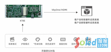 MeetUs核心控制卡KT8E,提供標準的VbyOne和HDMI接口,可實現(xiàn)與客戶自有或自主開發(fā)的應(yīng)用系統(tǒng)兼容對接,同時開放SDK包,助力客戶打造定制化應(yīng)用系統(tǒng)與交互能力。