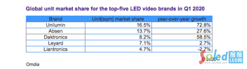 Omdia專業(yè)影音設(shè)備高級分析師Julie-Anne Badier表示:“盡管第一季度大多數(shù)技術(shù)市場均出現(xiàn)下滑,但隨著新的垂直市場和租賃應(yīng)用的蓬勃發(fā)展,LED視頻顯示器成功逆轉(zhuǎn)了這一趨勢。” “ LED視頻顯示器已在許多采用投影或LCD顯示技術(shù)的垂直領(lǐng)域獲得認(rèn)可,例如控制室以及公司和安全市場。”