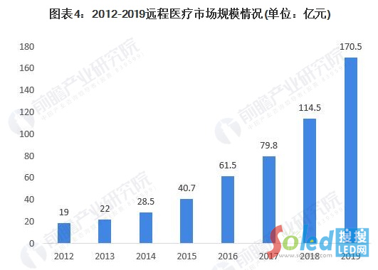 2019年,我國(guó)遠(yuǎn)程醫(yī)療(包括遠(yuǎn)程患者監(jiān)測(cè)、視頻會(huì)議、在線(xiàn)咨詢(xún)、個(gè)人醫(yī)療護(hù)理裝置、無(wú)線(xiàn)訪(fǎng)問(wèn)電子病例和處方等)行業(yè)市場(chǎng)規(guī)模進(jìn)一步增長(zhǎng)至170.5億元。