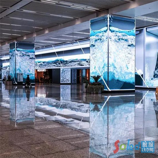 上海虹橋樞紐的奧所未來城,東連虹橋機場T2航站樓,西接虹橋火車站,是全國首個定位于科技和藝術(shù)的沉浸式樞紐商業(yè)體。奧所未來城規(guī)劃建設(shè)LED顯示屏6000㎡,目前可打卡面積達(dá)1800㎡,其中最大整屏長達(dá)113米,覆蓋整個層高,可以給人們帶來巨大的視覺沖擊力。該項目由艾比森承建,根據(jù)不同的場景設(shè)計了不同面積、造型、功能的LED顯示大屏。構(gòu)造了一個沉浸式的樞紐商業(yè)體,視覺效果與商業(yè)價值兼具。西大廳700平方米的巨屏更鋪滿整個墻面,給人置身大海的沉浸體驗。再加上8根四面完全包裹LED顯示屏的大柱子,讓水缸的效果更加突破3D體驗。總面積達(dá)到1275平方米的LED顯示屏群體,吸引不少人駐足觀看,并拿出手機拍攝,第一時間留下魔都風(fēng)采。