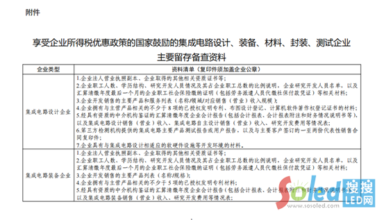 六、符合條件的集成電路設(shè)計(jì)、裝備、材料、封裝、測試企業(yè),按照《國家稅務(wù)總局關(guān)于發(fā)布修訂后的<企業(yè)所得稅優(yōu)惠政策事項(xiàng)辦理辦法>的公告》(國家稅務(wù)總局公告2018年第23號)規(guī)定的“自行判別、申報(bào)享受、相關(guān)資料留存?zhèn)洳?rdquo;的辦理方式享受稅收優(yōu)惠,主要留存?zhèn)洳橘Y料見附件。享受優(yōu)惠的企業(yè)在完成年度匯算清繳后,按要求將主要留存?zhèn)洳橘Y料提交稅務(wù)機(jī)關(guān),由稅務(wù)機(jī)關(guān)按照財(cái)稅〔2016〕49號第十條規(guī)定轉(zhuǎn)請省級工業(yè)和信息化主管部門進(jìn)行核查。