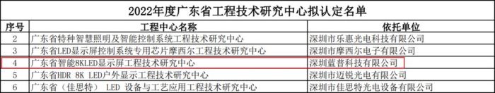 日前,藍(lán)普科技申報的“廣東省智能8KLED顯示屏工程技術(shù)研究中心”項(xiàng)目成功上榜,這是藍(lán)普在高清節(jié)能顯示發(fā)展又邁進(jìn)的一大步。