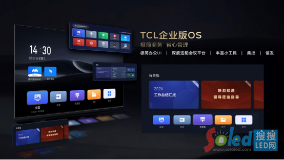 此外,TCL辦公智屏搭載的“TCL企業(yè)版OS”還加入了背景板等多種實用工具。商務接待場景下,只需提前一分鐘,就可以使用手機定制會議室大屏的專屬歡迎界面,免去各種繁瑣的準備流程。