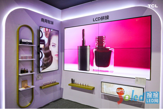 而結合美妝行業(yè)特點的TCL智慧美妝解決方案,采用商用智屏、2*2 LCD拼接屏和條形屏,組合成絢麗多彩的畫面,優(yōu)化門店產品的展示效果,讓客戶更全面了解品牌調性及產品信息,提升攬客效率。