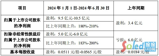 TCL科技預(yù)計,公司上半年實現(xiàn)歸母凈利潤9.5~10.5億元,同比增長180%~210%;扣非歸母凈利潤同比扭虧為盈。