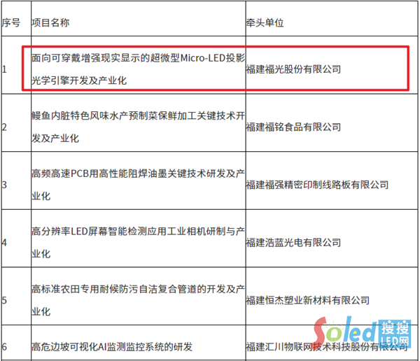 其中包含由福建福光股份有限公司牽頭的“面向可穿戴增強(qiáng)現(xiàn)實(shí)顯示的超微型Micro LED投影光學(xué)引擎開發(fā)及產(chǎn)業(yè)化”項(xiàng)目。