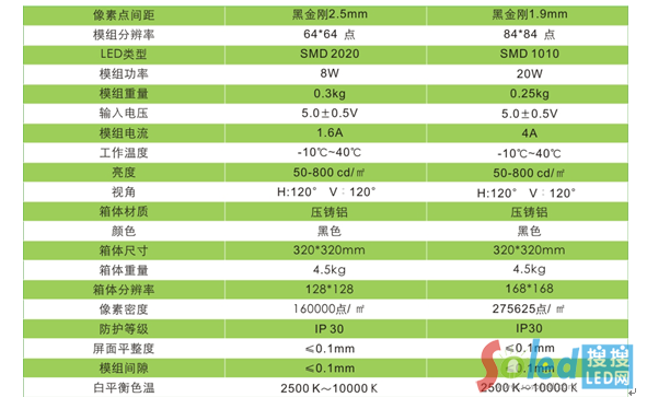 會議顯示用黑金剛P2.5、P1.9產品參數(shù)